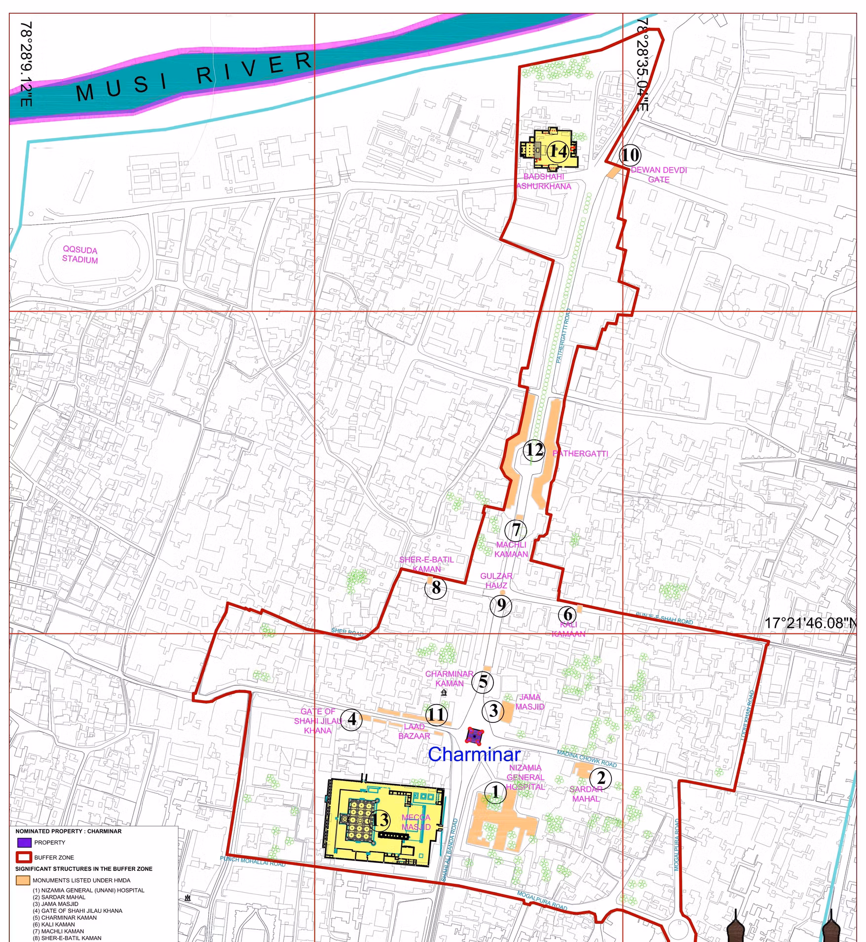 The Qutb Shahi monuments of Golconda Fort, Qutb Shahi Tombs and Char Minar are the oldest and most significant monuments of the sister cities of Golconda and Hyderabad. The legendary centre of diamond trade, Golconda was a medieval fortified city complete with residential, military and courtly functions. The Qutb Shahi tomb complex was a grand royal necropolis in the distinctive Qutb Shahi architectural style. Unique in its architectural typology, the Char Minar remains an acknowledged masterpiece of Islamic architecture. With its unique form, architectural typology and location, it is among the most recognizable icons of Indian architecture. The monuments of the Qutb Shahi period provide vivid testimony of the creative synthesis of Persianate and Indic cultural traditions with a unique Deccani identity. Qutb Shahi architecture began with Bahmani moorings and evolved a sophisticated architectural aesthetic within the the Deccani paradigm, symbolizing the zenith of Islamic architecture in South India.